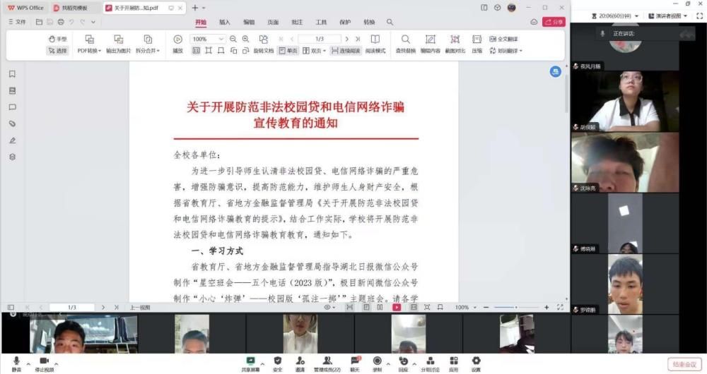 9月25日至26日,根據學校《關于開展防范非法校園貸和電信網絡詐騙宣傳教育的通知》,2023級本科生有序開展了大學生防范電信網絡詐騙、非法校園貸主題教育活動,各班組織同學們開展線上班會、觀看詐騙動畫、完成線上學習打卡、感受高頻騙術場景模擬。同學們紛紛表示,通過此次學習認識到了非法校園貸和電信詐騙的危害性,會提高警惕,提升識騙識詐能力。