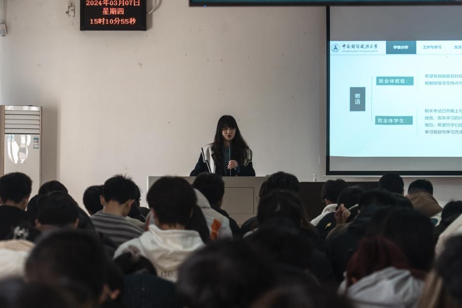 在生活與衛生方面,包老師結合查寢情況,著重闡述了大學生養成規律作息、勤于打理等好習慣的重要性。此外,她對寢室衛生、個人生活作風等方面的注意事項做了說明,強調務必要樹立起“及時收拾、清理垃圾、保持衛生”的底線思維。此外,包老師圍繞校園紀律、校外實習和請假流程等問題做出了具體說明。最后,包老師提出新學期寄語,希望大家能夠保持謙虛和進取的心態,努力追求卓越,不斷超越自我。