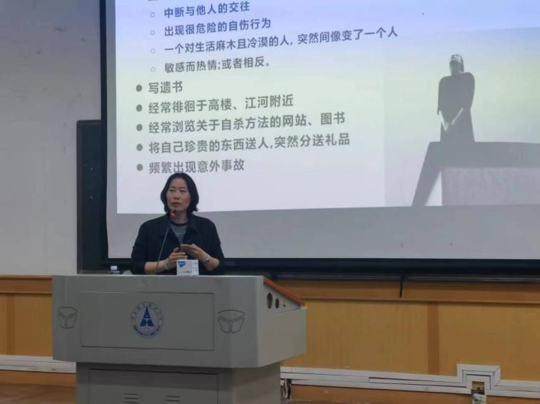 劉青老師以生動形象的案例為起點,介紹了心理危機在行為、認知、生理和心理四個方面的反應和自殺的風險等級,使同學們對心理危機有了初步認知。接著,劉老師詳細講解了自殺者的心理感受與朋輩互助的正確態度和方法,她強調共情是朋輩互助的核心,并著重提及朋輩互助的最佳方式是尋求專業人士的幫助。最后,劉老師介紹了我校心理健康教育咨詢中心的資源配置以及尋求心理幫扶的有效途徑,她希望通過本次培訓,能夠幫助我校學生正確處理心理問題,減少心理危機的發生,樹立健康的心理意識。