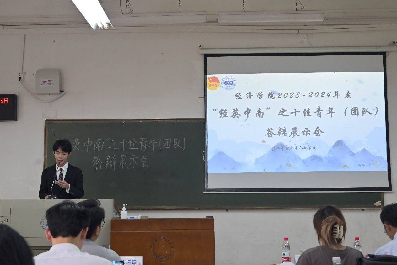 (學生記者 肖貝貝 攝影 支祎珉)為發掘我院優秀青年人才,展現我院青年積極進取的價值追求,以榜樣為旗幟,營造向上向善的良好氛圍,偉德體育官網2023-2024學年“經英中南”之十佳青年(團隊)答辯展示會于4月25日下午在文瀾樓108室順利開展。本次答辯會邀請偉德體育官網分團委書記陳遠瞻、2020級本科生輔導員沈鵬飛、分團委副書記杞欣蓓及學生會主席彭也軒擔任答辯評委。偉德體育官網本科生、研究生各班級代表與會。