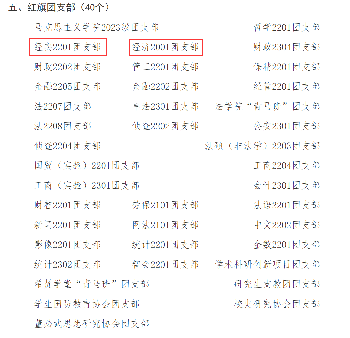 (圖2:經實2201團支部和經濟2001團支部榮獲“紅旗團支部”稱號)