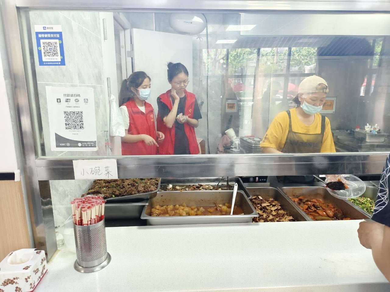 活動(dòng)伊始,志愿者們于上午10:00集合會面,共同前往武漢市東西湖常青花園社區(qū)。到達(dá)目的地后,志愿者們兵分三路,一路帶上反詐傳單,在社區(qū)內(nèi)部宣講反詐小知識;一路前往幸福食堂后廚跟師傅們學(xué)習(xí)打菜的學(xué)問;最后一路向食堂阿姨們學(xué)習(xí)如何清理餐桌等收尾工作。志愿服務(wù)步步落實(shí)到位,具體而微。