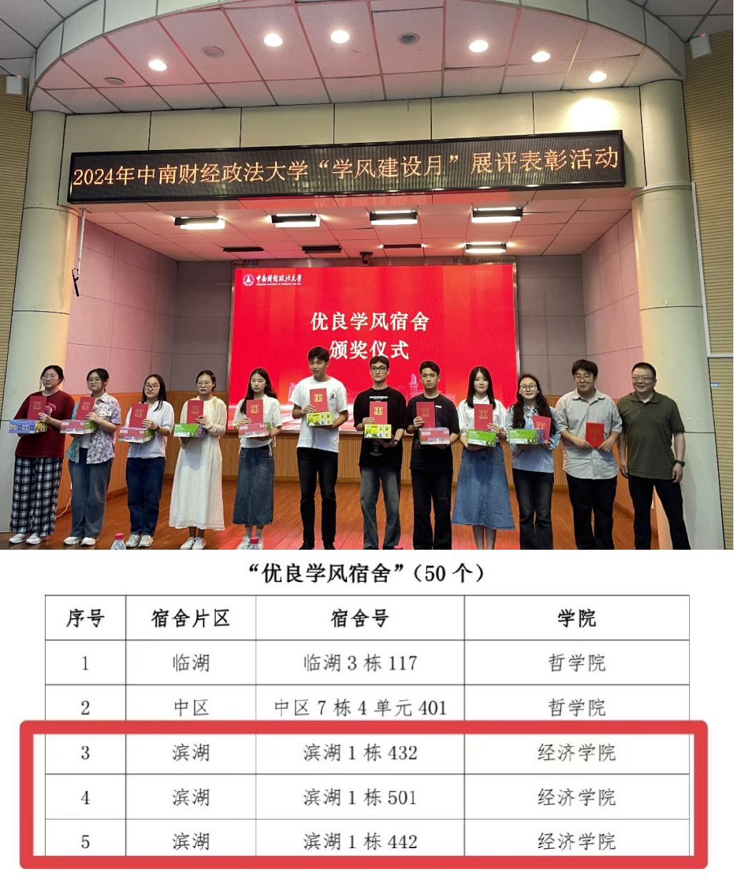 (圖1:偉德體育官網濱湖1棟432、濱湖一棟501、濱湖一棟442宿舍榮獲“優良學風宿舍”先進集體獎項)