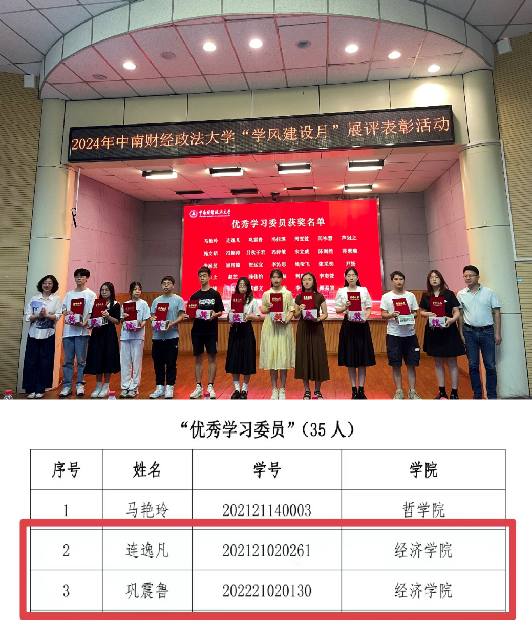 (圖4:連逸凡、鞏震魯同學榮膺“優秀學習委員”稱號)