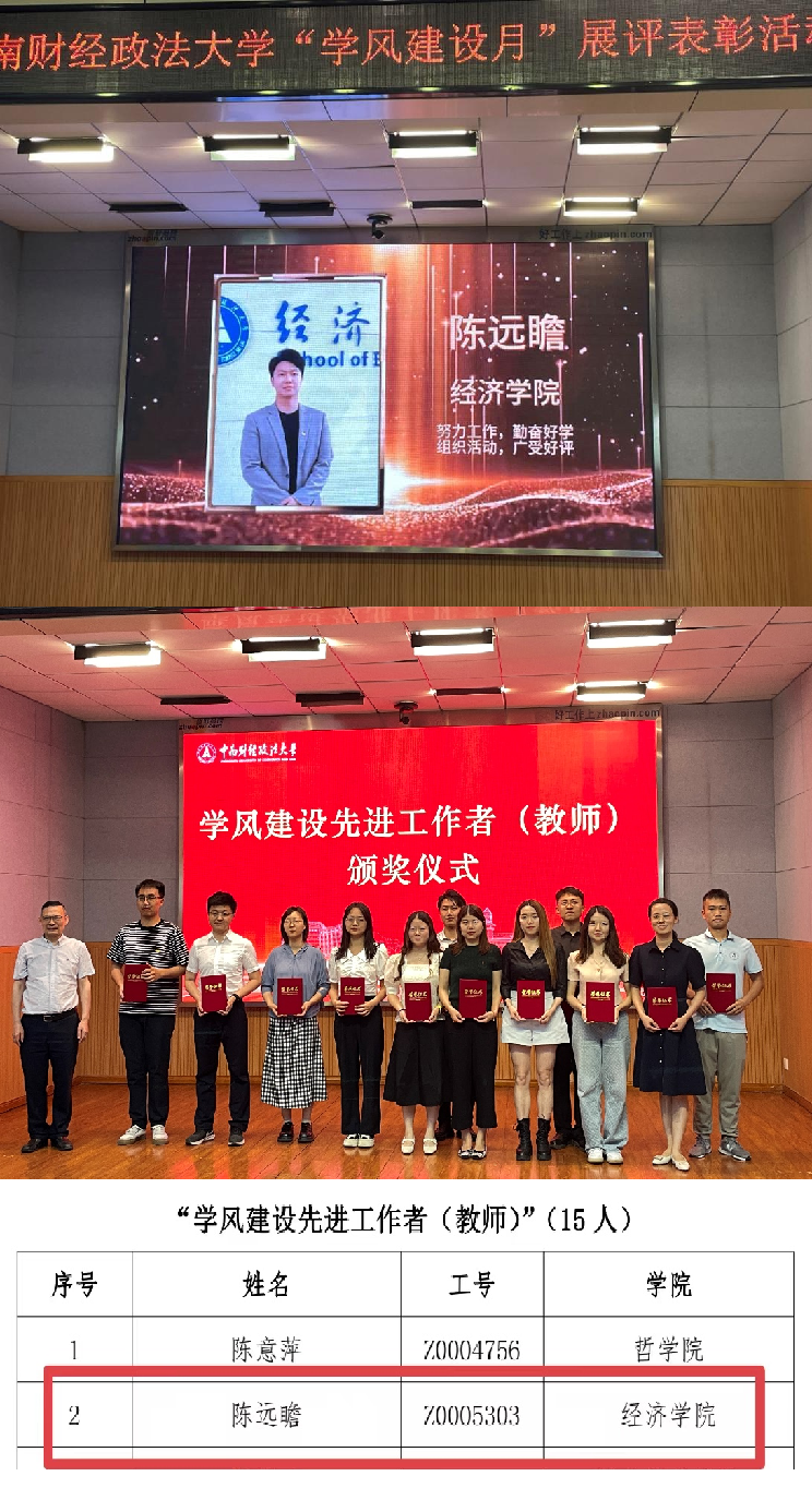 (圖2:陳遠瞻老師榮膺“學風建設先進工作者(教師)”稱號)
