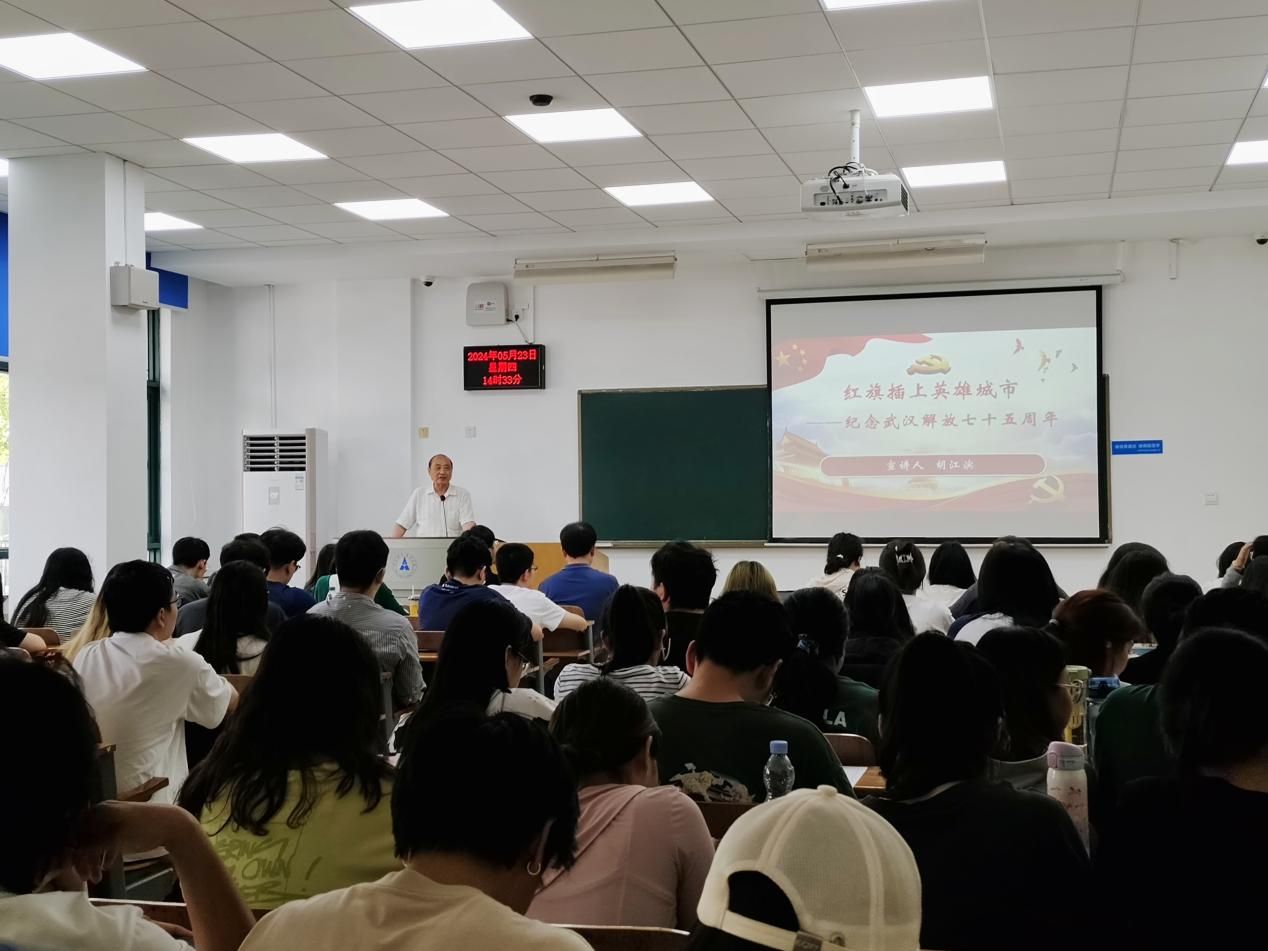 (通訊員 覃徐歡)賡續百年初心,鑄就紅色江城,七十五載櫛風沐雨,英雄城市砥礪前行。為紀念武漢解放七十五周年,5月23日,偉德體育官網于文泰樓109面向本科生第一、第二、第三黨支部舉辦了“紅旗插上英雄城市——紀念武漢解放七十五周年”主題黨課。本次黨課邀請了原偉德體育官網黨委書記、現學校離退休人員黨委副書記、學校關心下一代工作委員會副秘書長胡江濱教授主講,偉德體育官網黨委副書記俞凡主持,2020級本科生輔導員沈鵬飛、偉德體育官網本科生全體黨員參加了本次黨課。