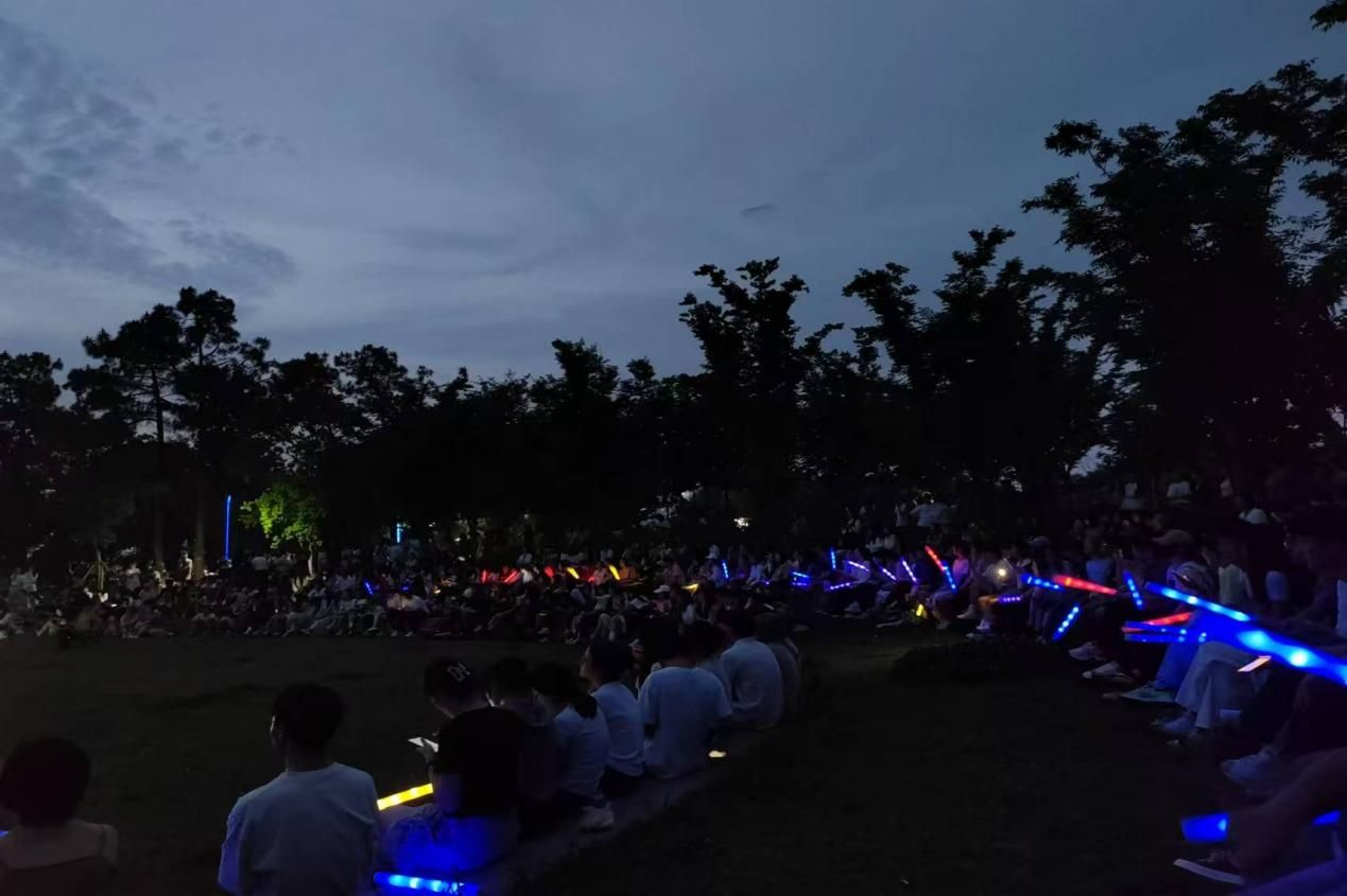 春夜草坪音樂響,螢火蟲舞星光旁。傍晚時(shí)分,草坪音樂節(jié)拉開帷幕。校內(nèi)歌唱協(xié)會、吉他協(xié)會、粵語協(xié)會以及校園歌手們齊聚一堂,共同演繹一場心靈盛會。動人心弦的歌聲此起彼伏,整個(gè)校園因而增添了幾分青春活力。螢火蟲若隱若現(xiàn),穿梭人群之中,化作點(diǎn)點(diǎn)星光,隨著音符飄進(jìn)學(xué)生們的心里。聽歌識曲、歌詞接龍,同學(xué)們邂逅于一場音樂會,雖互不相識,卻相聚一刻,感受著晃動的音符,心亦隨節(jié)拍起伏,正如夜空繁星閃爍,光亮交錯(cuò)。