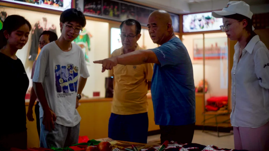 7月5日,同學們來到廣東省揭陽市榕城區梅兜村,對榕義興英歌舞隊的多位非遺傳承人及年輕學員進行采訪。從他們的講解中,團隊了解到潮汕人對英歌舞的深厚情感與獨特情懷,這種自小便根植于心的文化認同, 使得舞英歌成為了許多人心中無上的榮譽。